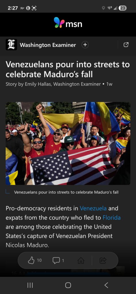 Just look what Venezuela was going through since 1992. When Maduro, and people like him, started, their socialist ideology they ended with people so hungry they ate their zoo animals. In 1992, Venezuela was one of the top grossing nations. And now they are so poor that our country had to go in and take down their terrorist president, to keep him from sending more fentanyl into our nation. They couldn’t even control this guy but now the political prisoners of Maduro are released and their nation is celebrating!